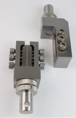 试样沿着V 字型凹槽口对着加载力的方向插入到两个试样夹头内。两个相同的试样夹头在装置了馥勒的拉伸测试机器上产生变形。两个试样夹头之间的相对位移将会在试样字型凹槽内产生剪应力